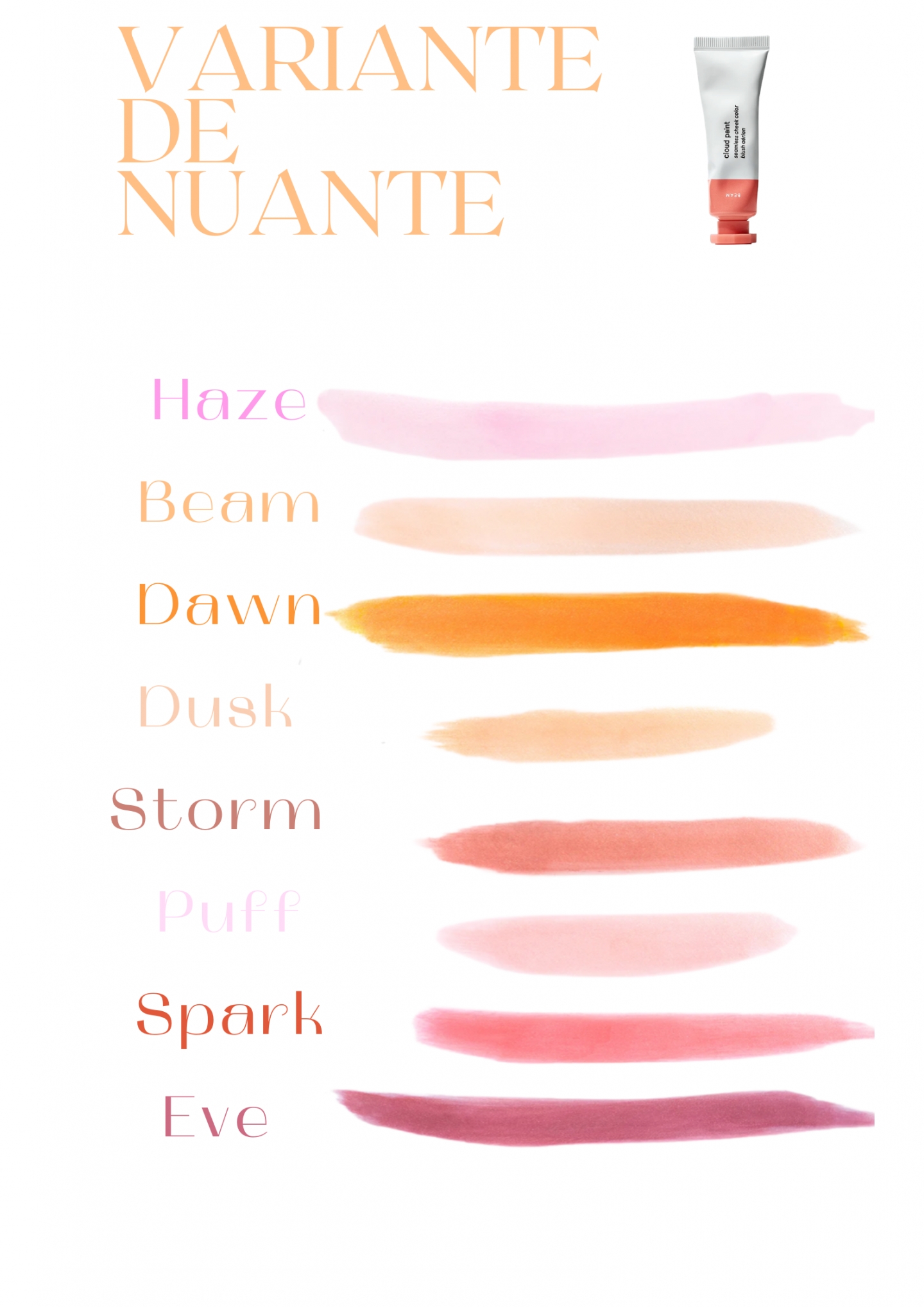 Daca amestecati mai multe nuante de Cloud Paint pentru o culoare personalizata, va recomandam sa le combinati mai intai pe dosul palmei, pentru a amesteca mai usor nuantele.