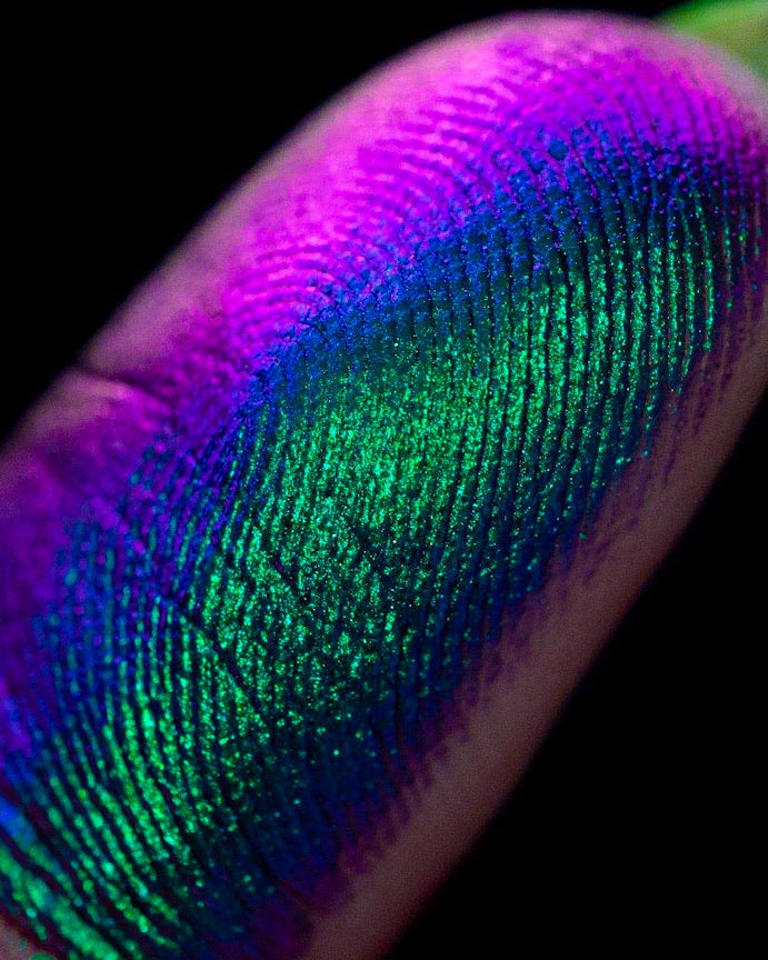 Original Multichrome este un pigment fin sub forma de pudra libera, cu o baza putin mai inchisa, pentru a intensifica culorile ce il compun. Pigmentul unic poate schimba pana la 4 culori diferite, multitonale, in functie de unghiul si lumina din care priviti. Pentru a crea efectul de oglinda multicromatic, pudra trebuie aplicata peste un primer sau mixing medium. Va recomandam primerul Fix Potion ca si adeziv pentru fard. Este nevoie doar de o cantitate mica datorita texturii unice.